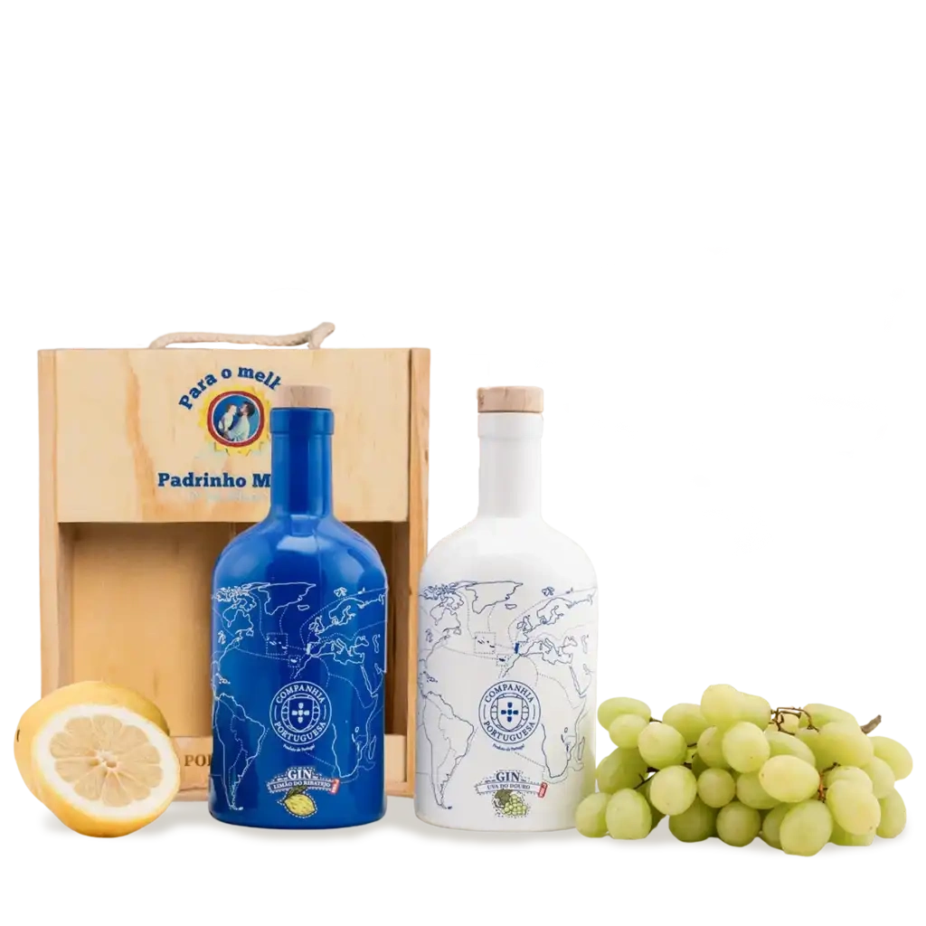 Garrafa de Gin Limão do Ribatejo de 70 Cl + Garrafa de Gin Uva do Douro de 70 Cl + Caixa Personalizada + Oferta Papel de Prenda (embrulho)